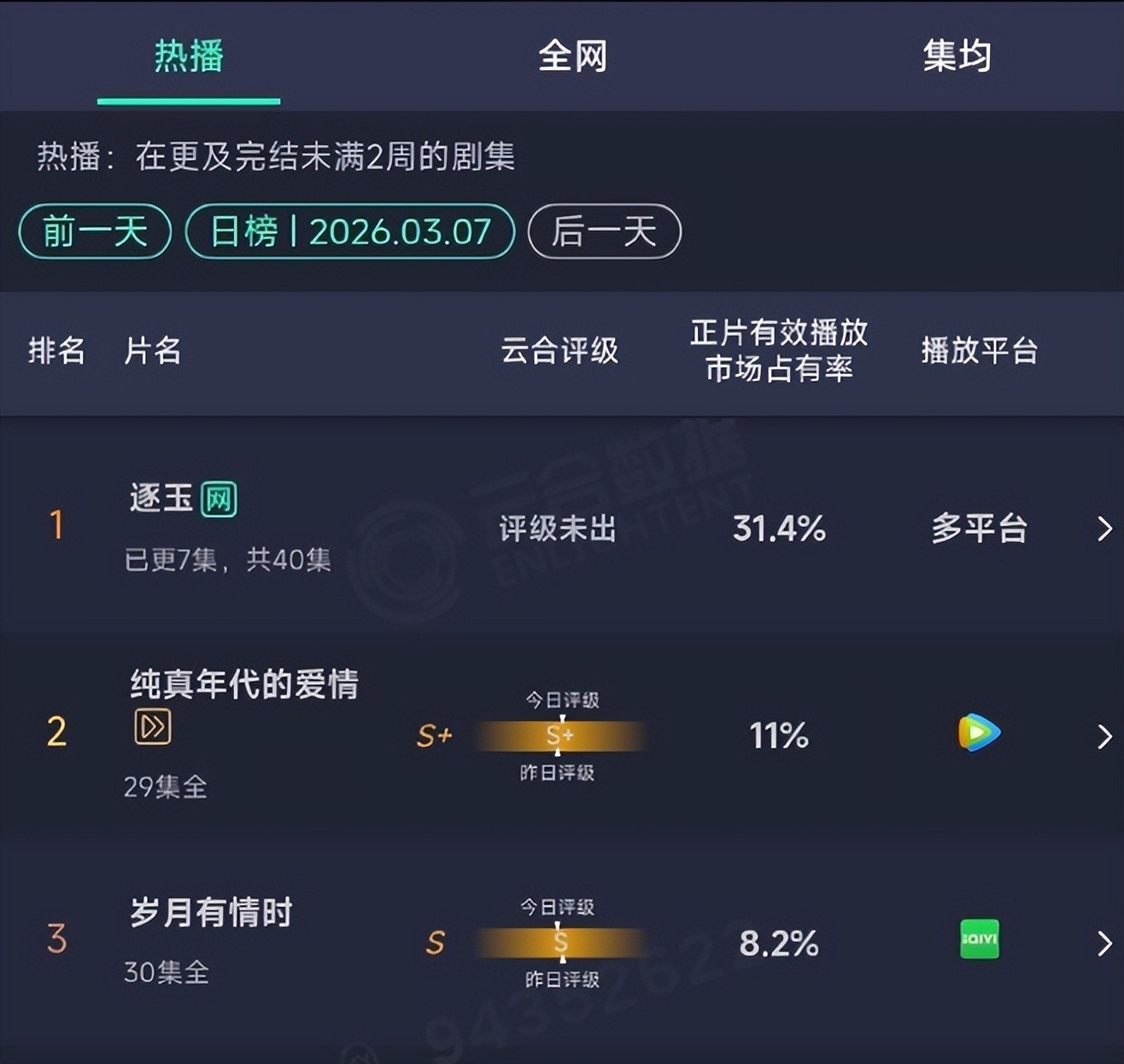在第二天的时候,《逐玉》的云合正片有效播放市占率,竟达到31.4%,直接以翻倍的形式增长,这势头真的太猛了,一般剧都压不住啊。